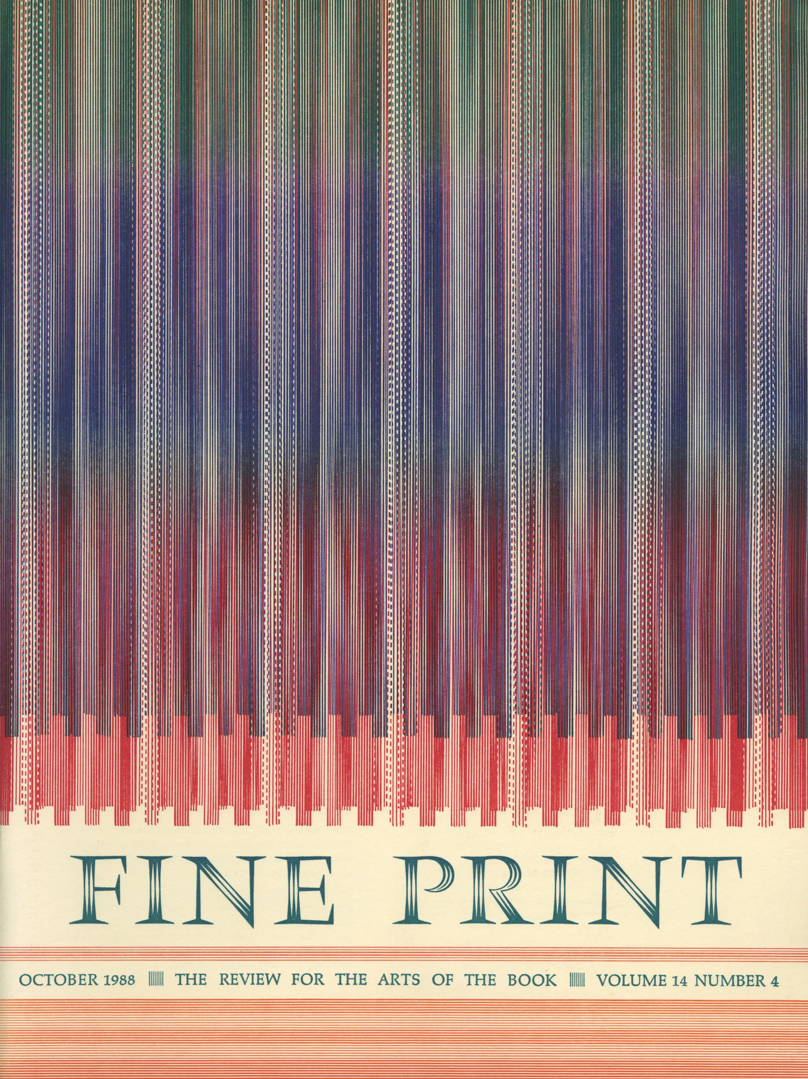 “Fine Print” (1975–1990), founded and edited by Sandra Kirshenbaum in San Francisco, was a quarterly devoted to the book arts—covering book printing, typography, binding, and calligraphy.