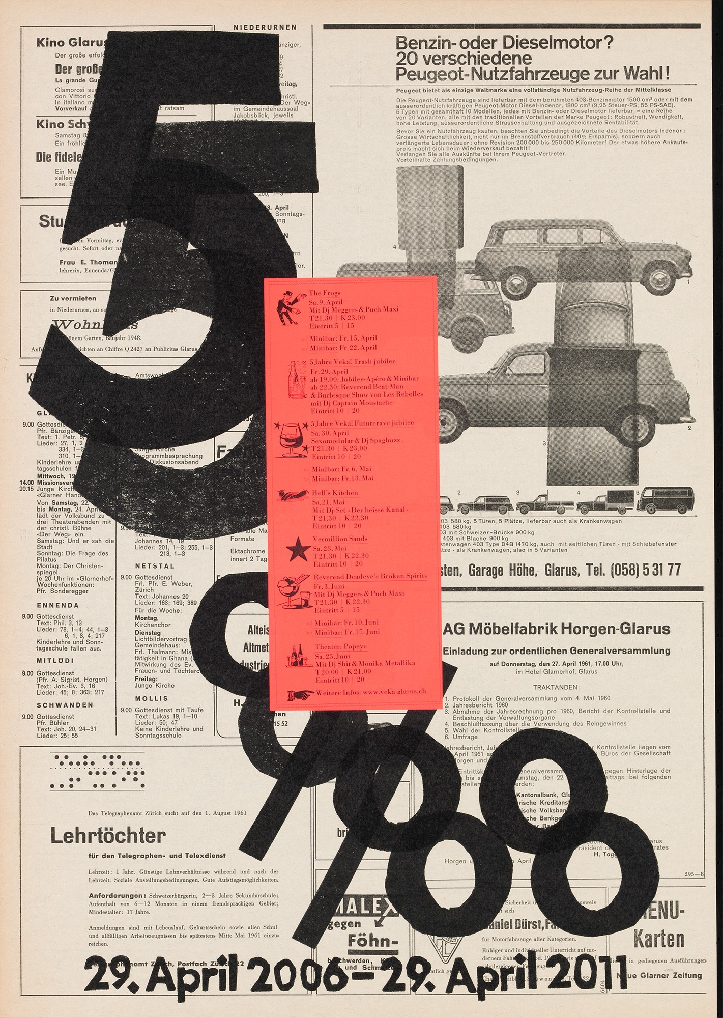 Old Newspaper, poster for veka-glarus.ch printed on 1961 newspaper