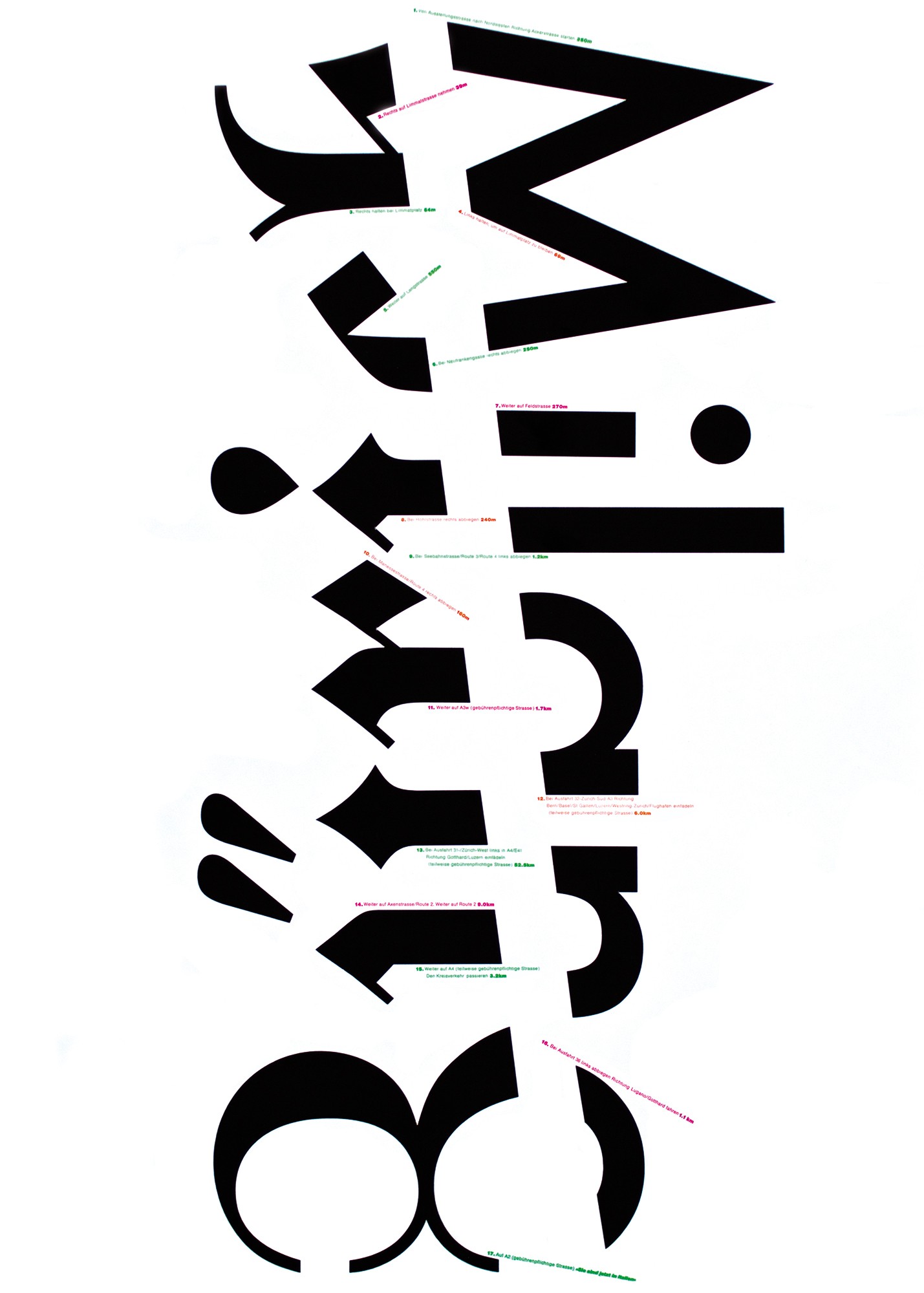 Zurich–Milano (Midseason), poster created in collaboration with Marco Nicotra using the Google maps route from Zurich to Milano