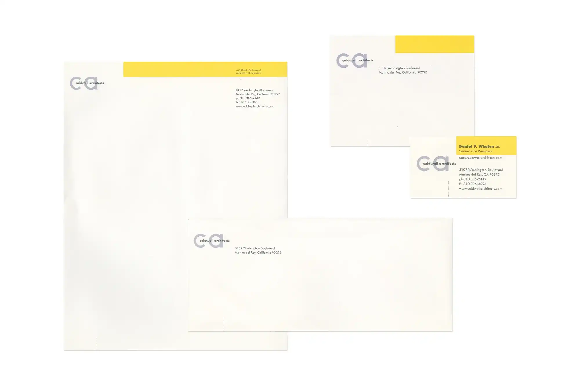 Based in Marina del Rey, Caldwell Architects was an architecture firm specializing in commercial, institutional, and residential projects. The firm’s identity emphasized professionalism and modern typography, reflecting a focus on thoughtful planning.