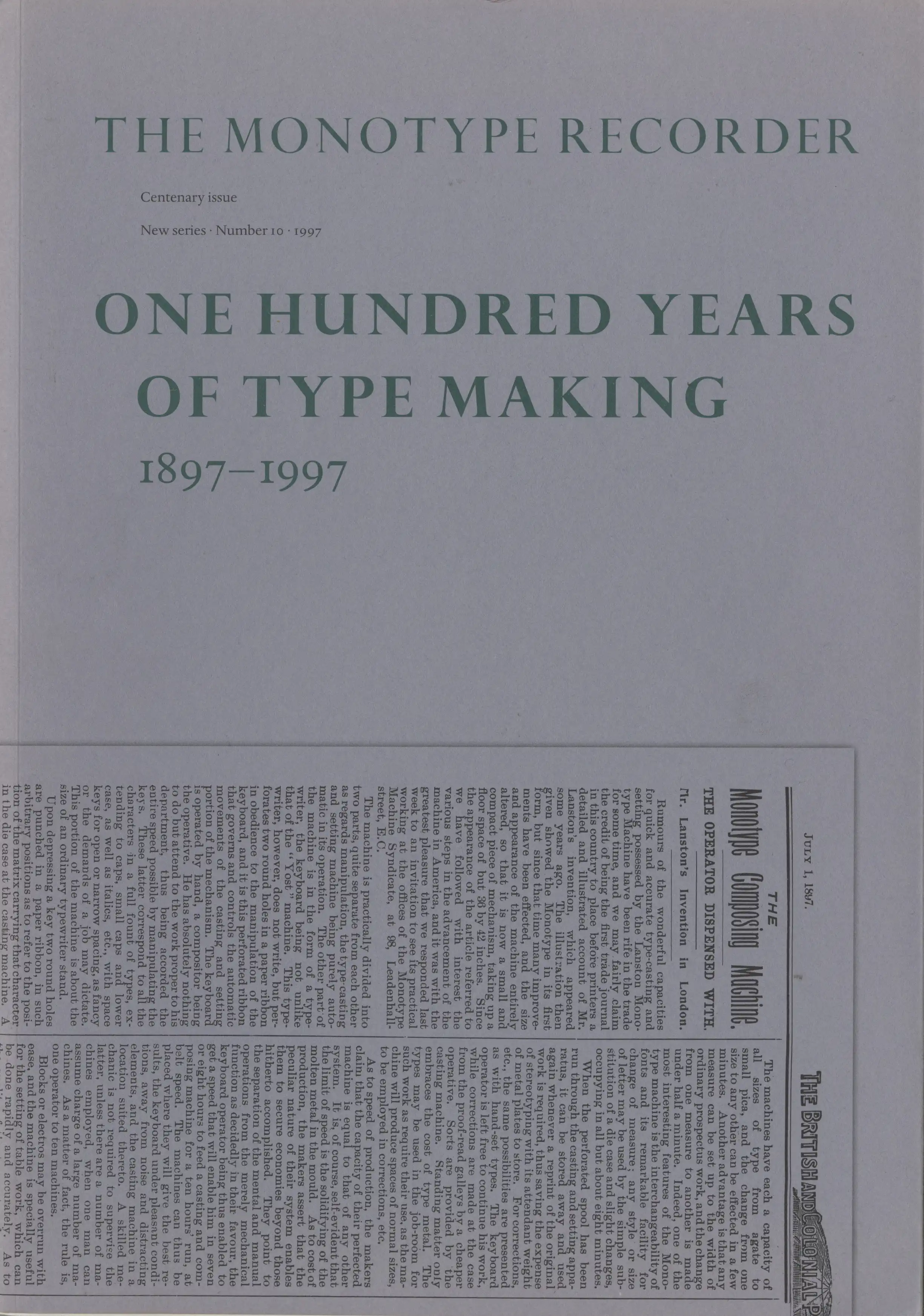 Monotype, The Monotype Recorder, No. 10