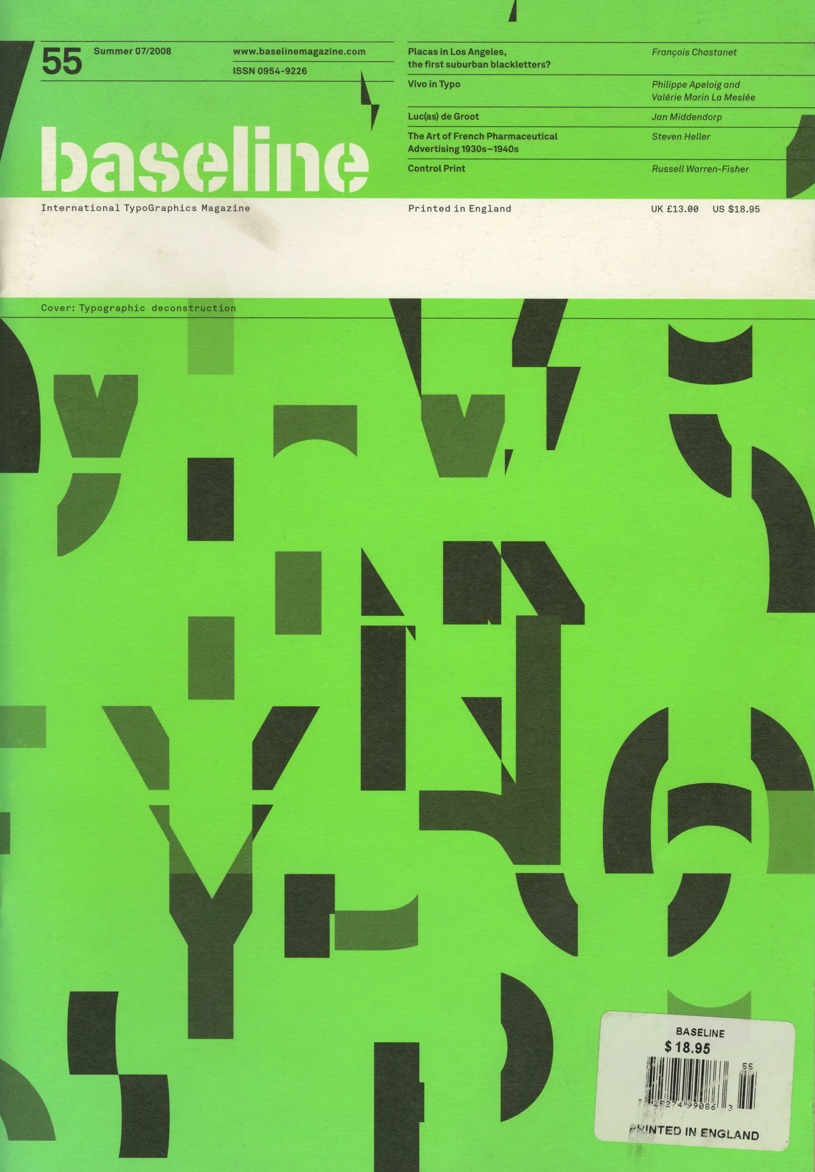 “Baseline”, founded in 1979 as a Letraset promotional booklet, evolved into an internationally acclaimed magazine on typography and type design. Known for its large format, rich visual production, and academic rigor, it’s currently edited by Mike Daines and Hans Dieter Reichert under Bradbourne Publishing.