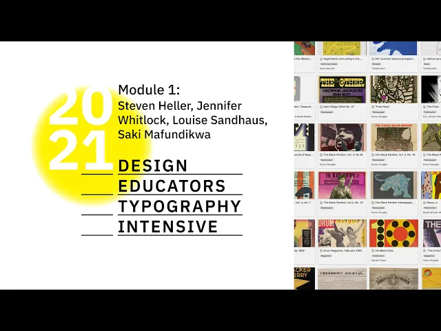 ![]() DETI: Module 1—“Design and Typography Archives” (Main Session) Steven Heller, is the co-chair with Lita Talarico of the MFA Design / Designer as Author + Entrepreneur program and the SVA Masters Workshop in Rome. He has written more than 190 books on graphic design, illustration and political art and is a contributing editor for Design Observer and Eye. Steven is the recipient of the Art Directors Club Special Educators Award, The Eric Carle Award, the AIGA Medal for Lifetime Achievement, among others. He has two honorary doctorates from College of Creative Studies, Detroit and University of West Bohemia, Czech Republic. Jennifer Whitlock is the archivist for the Vignelli Center for Design Studies at Rochester Institute of Technology (RIT). She initiated an archives program for the Indianapolis Museum of Art, served as a project archivist and interim acting curator at the Architecture & Design Collection at University of California Santa Barbara, and also worked as an Assistant Librarian at the Portland Art Museum. As a self-proclaimed “design preserver,” Jennifer works relentlessly to promote archives to designers and design to archivists. Louise Sandhaus is a graphic designer, educator, and author, and the former Program Director and current faculty in the Graphic Design Program at California Institute of the Arts (CalArts). Louise’s work has appeared in numerous publications including California: Designing Freedom, Designer’s Dictionary of Color, The Women of Design, Information Design Handbook, among others. Louise is a Letterform Archive board member, a former AIGA board member and former Chair of the AIGA Design Educators Community steering committee. She is an AIGA Los Angeles Fellow and recipient of LA Design Week’s Design Icon Award. Saki Mafundikwa has been a graphic designer, author, and educator for over thirty years. As an expert on African writing systems, he has lectured, exhibited, and given workshops all over the world, including Pan African Design Institute Congress, SAVVY Spinning Triangles, Kinshasa, Congo; Ringling College, Sarasota; Multiverso Conference, Turin; Tasmeem Design Conference, Doha, Qatar; and more. Saki founded Zimbabwe Institute of Vigital Arts (ZIVA) in 1999, the country's first graphic design and new media college. The first Design Educator Typography Intensive (DETI), a global virtual learning environment, was presented by HMCT on July 17–18, 2020. The two-day intensive provided educators, designers, and students access to some of the most talented typography instructors currently teaching, who generously shared their expertise during the four webinar sessions. This module explores how design and typography archives can support teaching and what are the available digital resources. Moderated by Gloria Kondrup, Executive Director of HMCT. | ![]() DETI: Module 1—“Design and Typography Archives” (Classroom) Steven Heller, is the co-chair with Lita Talarico of the MFA Design / Designer as Author + Entrepreneur program and the SVA Masters Workshop in Rome. He has written more than 190 books on graphic design, illustration and political art and is a contributing editor for Design Observer and Eye. Steven is the recipient of the Art Directors Club Special Educators Award, The Eric Carle Award, the AIGA Medal for Lifetime Achievement, among others. He has two honorary doctorates from College of Creative Studies, Detroit and University of West Bohemia, Czech Republic. Jennifer Whitlock is the archivist for the Vignelli Center for Design Studies at Rochester Institute of Technology (RIT). She initiated an archives program for the Indianapolis Museum of Art, served as a project archivist and interim acting curator at the Architecture & Design Collection at University of California Santa Barbara, and also worked as an Assistant Librarian at the Portland Art Museum. As a self-proclaimed “design preserver,” Jennifer works relentlessly to promote archives to designers and design to archivists. Louise Sandhaus is a graphic designer, educator, and author, and the former Program Director and current faculty in the Graphic Design Program at California Institute of the Arts (CalArts). Louise’s work has appeared in numerous publications including California: Designing Freedom, Designer’s Dictionary of Color, The Women of Design, Information Design Handbook, among others. Louise is a Letterform Archive board member, a former AIGA board member and former Chair of the AIGA Design Educators Community steering committee. She is an AIGA Los Angeles Fellow and recipient of LA Design Week’s Design Icon Award. Saki Mafundikwa has been a graphic designer, author, and educator for over thirty years. As an expert on African writing systems, he has lectured, exhibited, and given workshops all over the world, including Pan African Design Institute Congress, SAVVY Spinning Triangles, Kinshasa, Congo; Ringling College, Sarasota; Multiverso Conference, Turin; Tasmeem Design Conference, Doha, Qatar; and more. Saki founded Zimbabwe Institute of Vigital Arts (ZIVA) in 1999, the country's first graphic design and new media college. The first Design Educator Typography Intensive (DETI), a global virtual learning environment, was presented by HMCT on July 17–18, 2020. The two-day intensive provided educators, designers, and students access to some of the most talented typography instructors currently teaching, who generously shared their expertise during the four webinar sessions. This module explores how design and typography archives can support teaching and what are the available digital resources. Moderated by Gloria Kondrup, Executive Director of HMCT. |